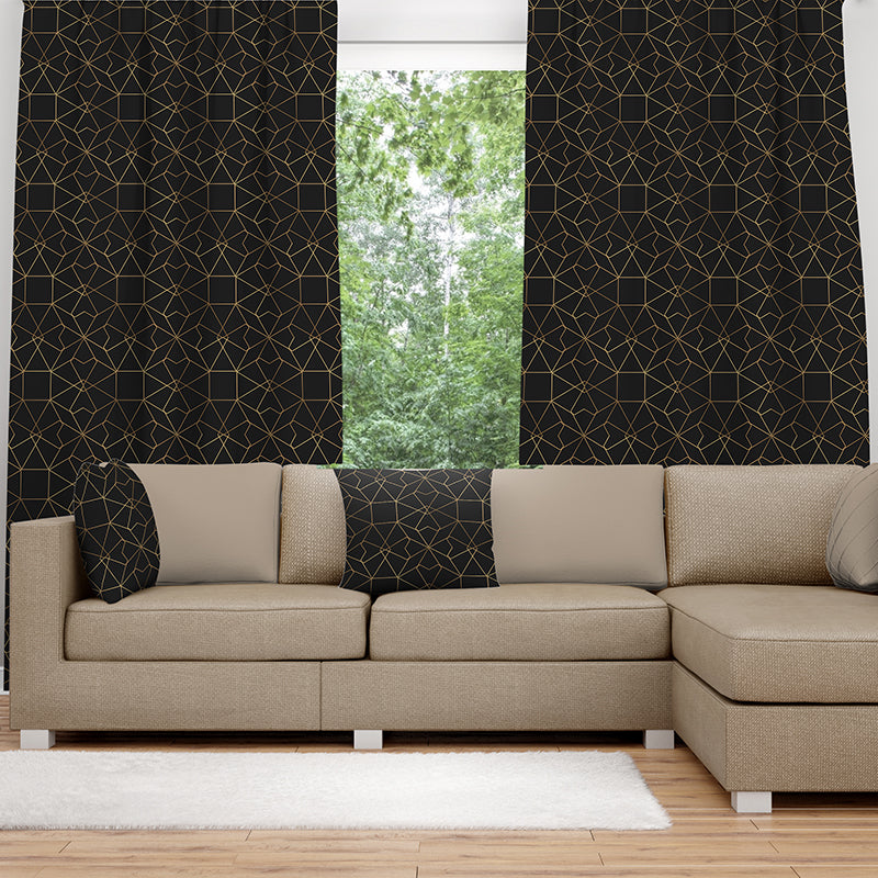 Black curtain with a gold Islamic pattern-AMN2148